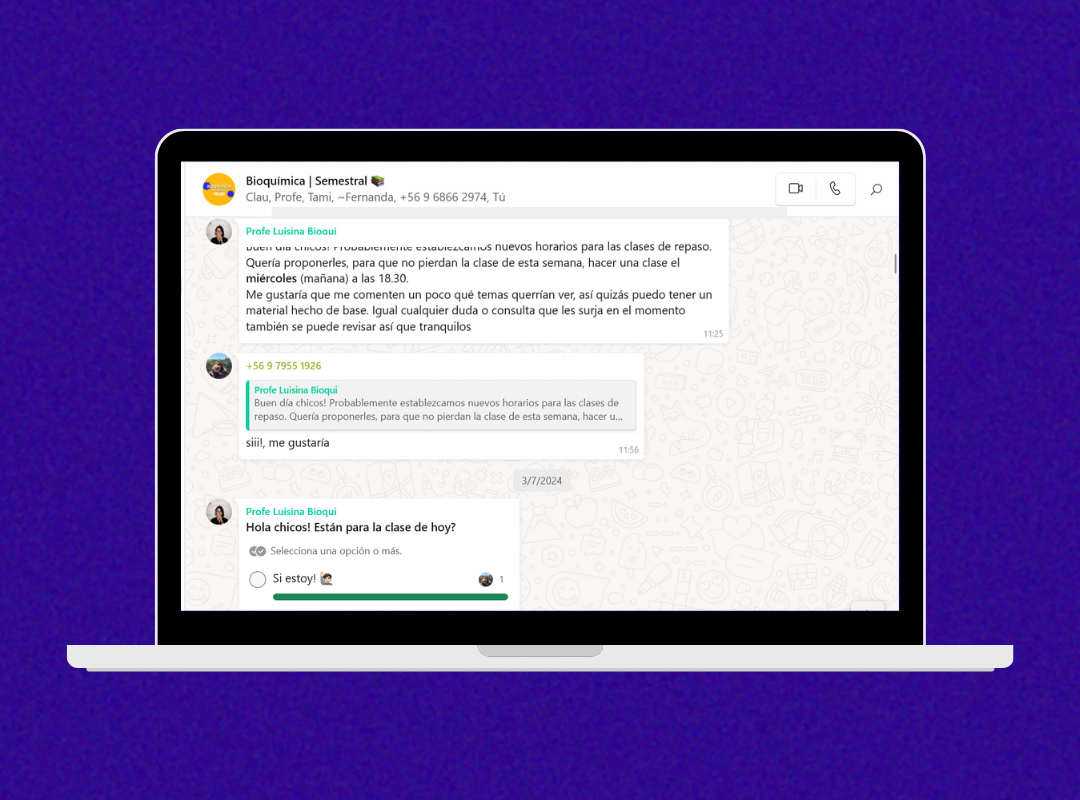 Podrás sacarte todas las dudas en un grupo de WhatsApp exclusivo con tus profesores, y en algún casos también clases en vivo.
